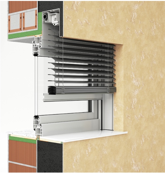 Medle Window is a stand-alone variable window with blinds and shutters.