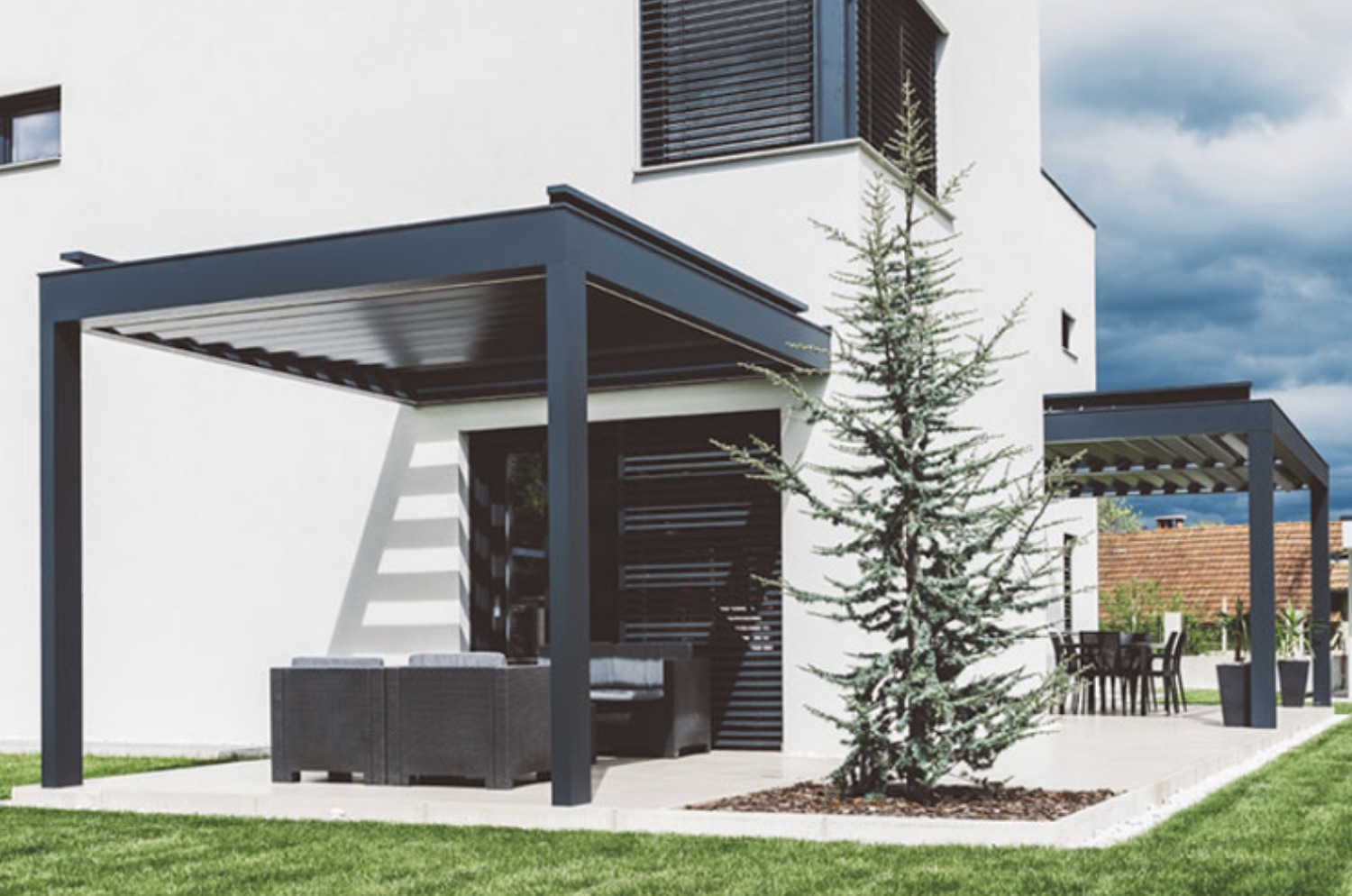 Hard-Top library for Archicad contains an object that allows you to design a Hard-Top pergola in all possible configurations.